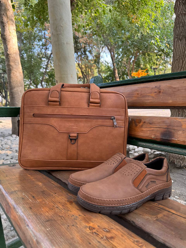 ست کیف و کفش چرم مصنوعی اداری مدل مردانه حلقه دار سهند