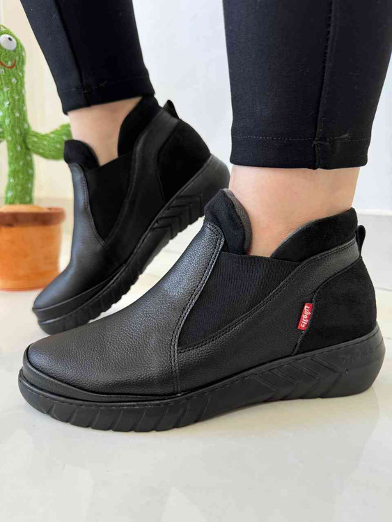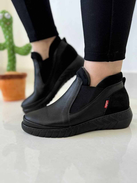 نیم بوت زنانه پشت چرم مدل چلسی دارک